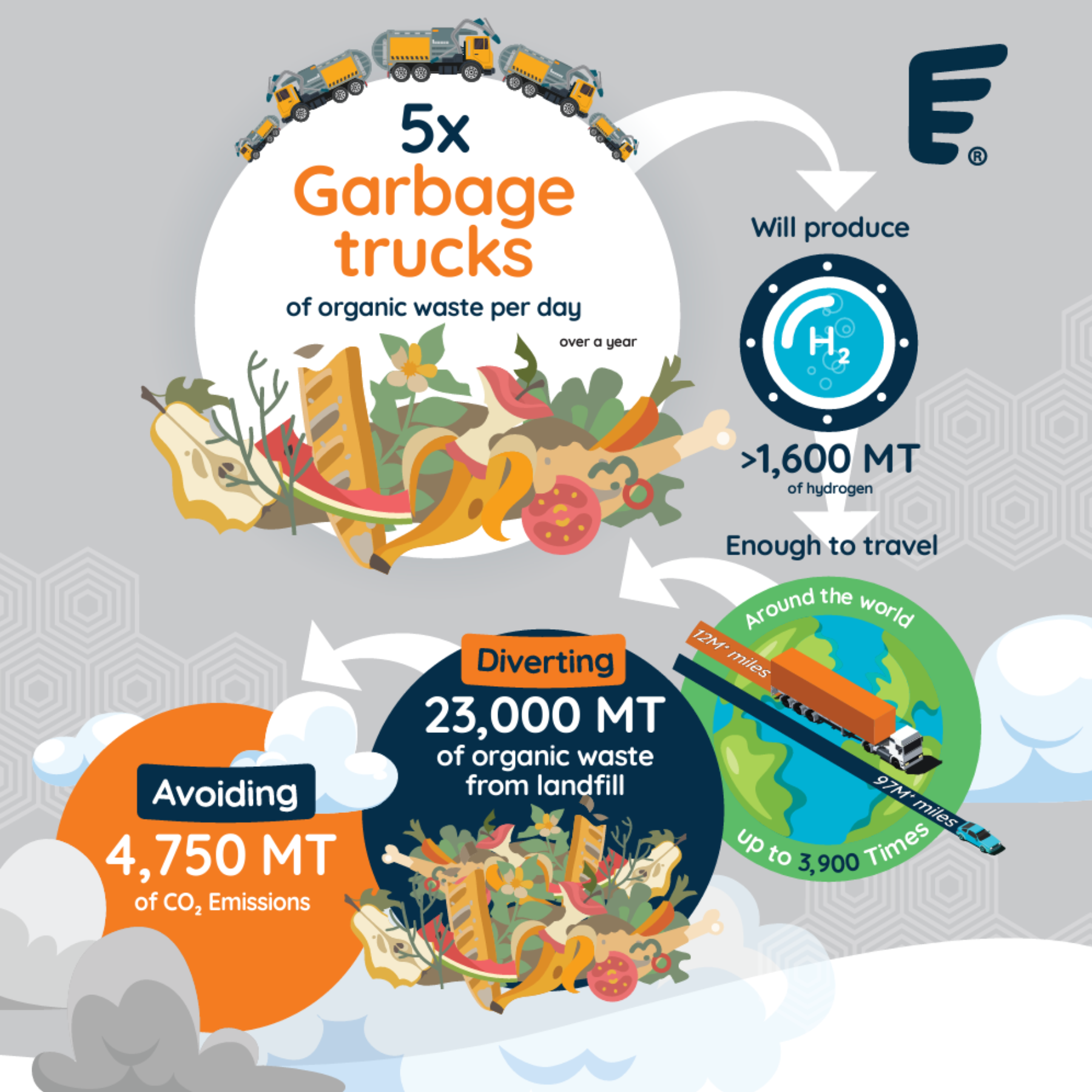 - By diverting 70 wet tons of organic waste per day, 7,245 tons of CO2e are avoided, which is equivalent to taking 1,600 gas-powered vehicles off the road for a year.